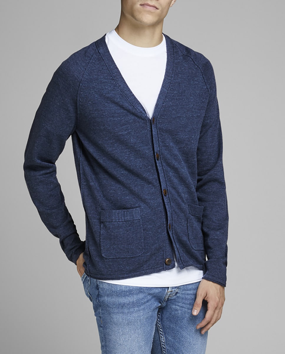 Chaqueta de punto de hombre azul marino con bolsillos