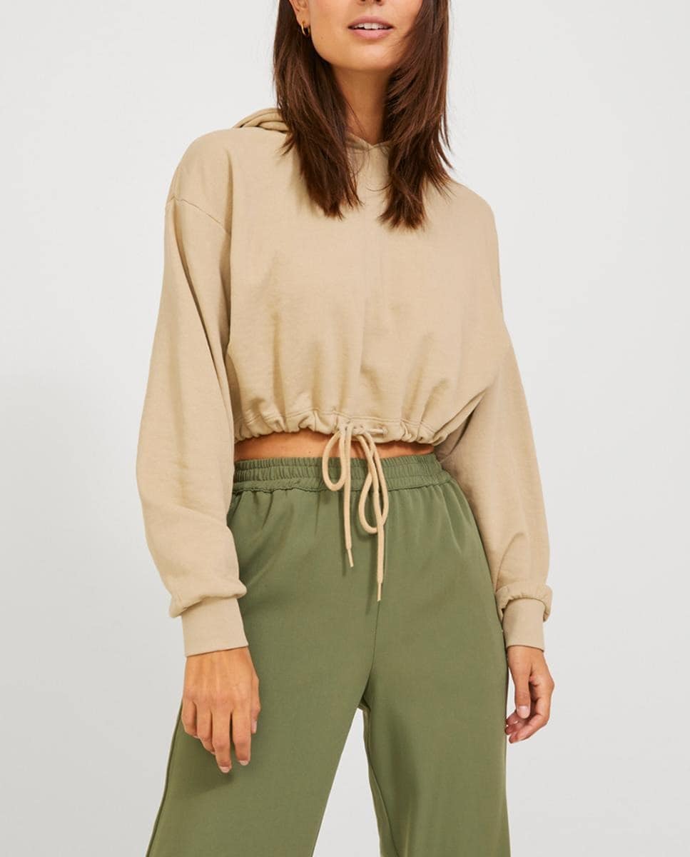 Sudadera cropped con capucha de mujer.