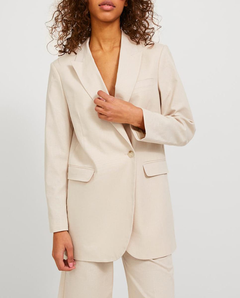 Blazer de lino de cuello solapa de mujer