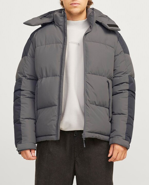 Abrigo confort acolchado concierre mediante cremallera cuello con capucha de hombre