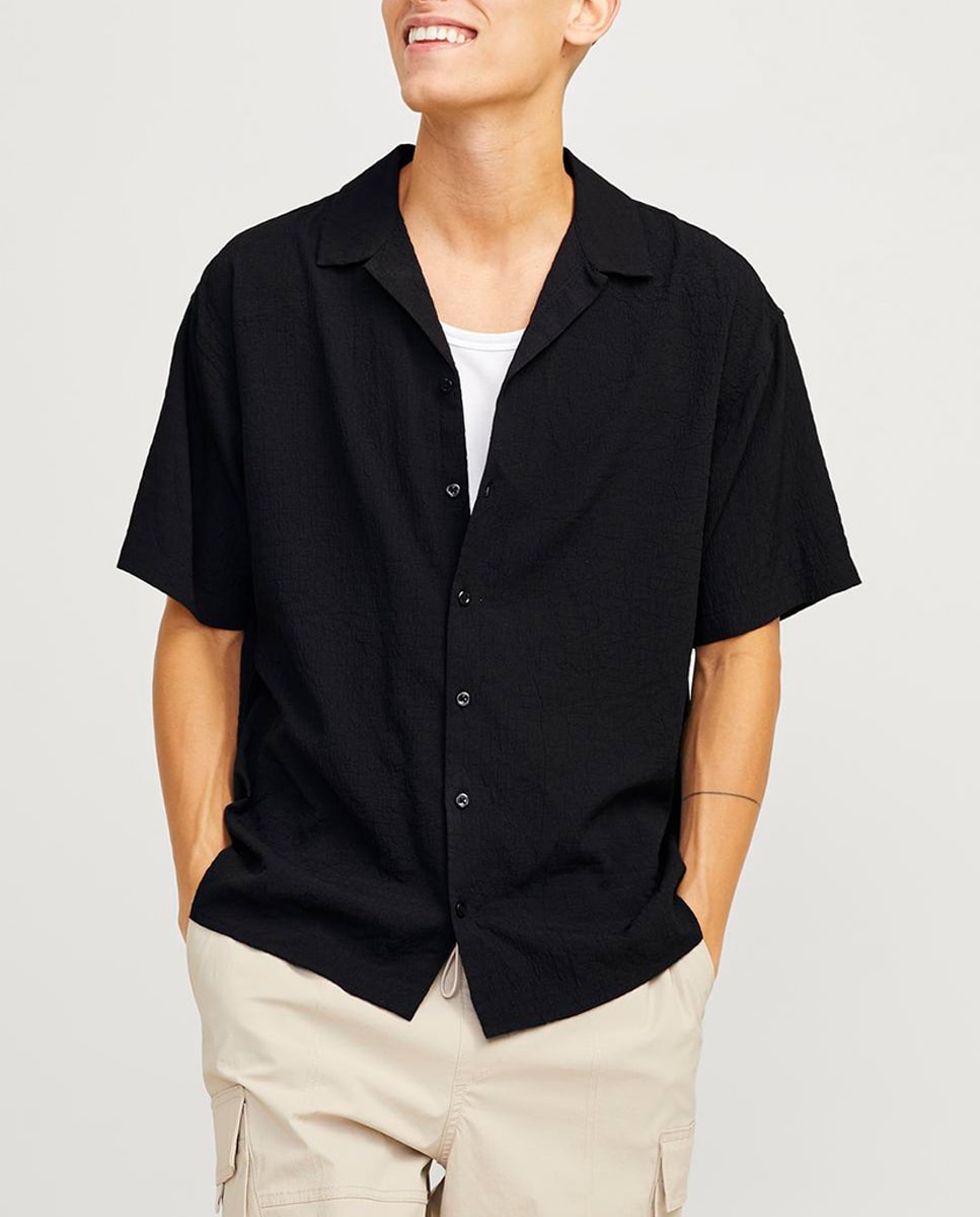 Camisa con cierre abotonado y tejido fruncido para hombre