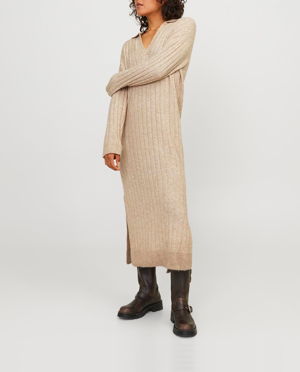 Vestido midi de punto cuello polo