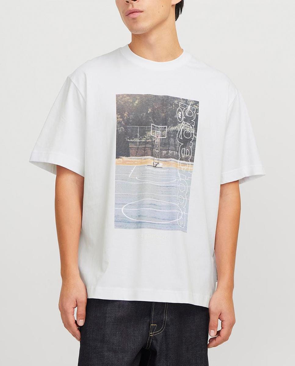Camiseta de manga corta cuello redondo y dibujo frontal de hombre