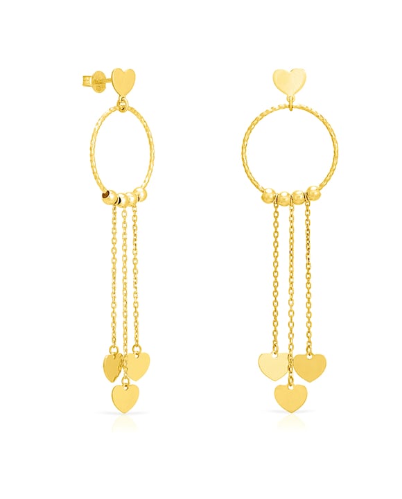 Pendiente de Plata de Ley 925 con aro y tres corazones