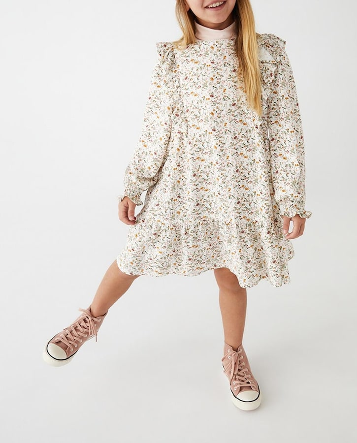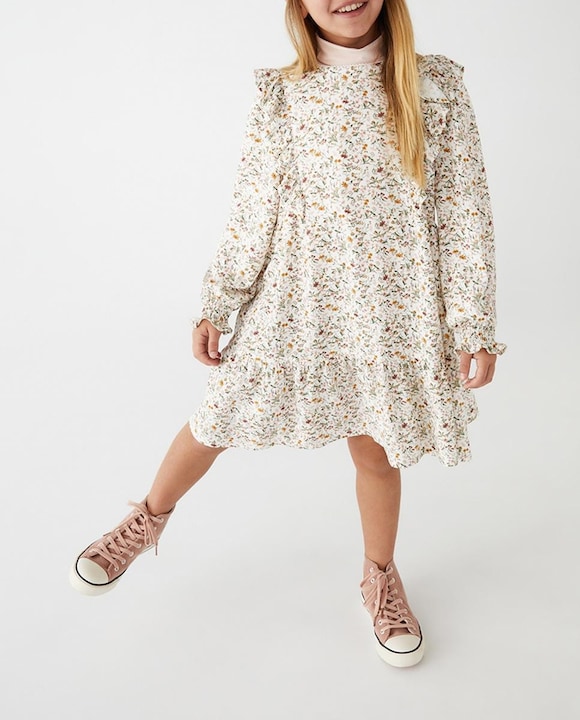 Vestido en twill viscosa estampado flores manga larga