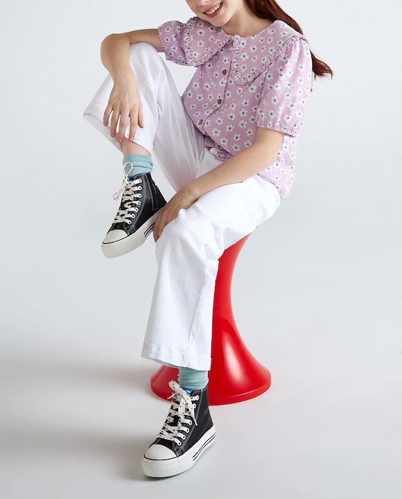 Blusa de niña de manga corta de flores