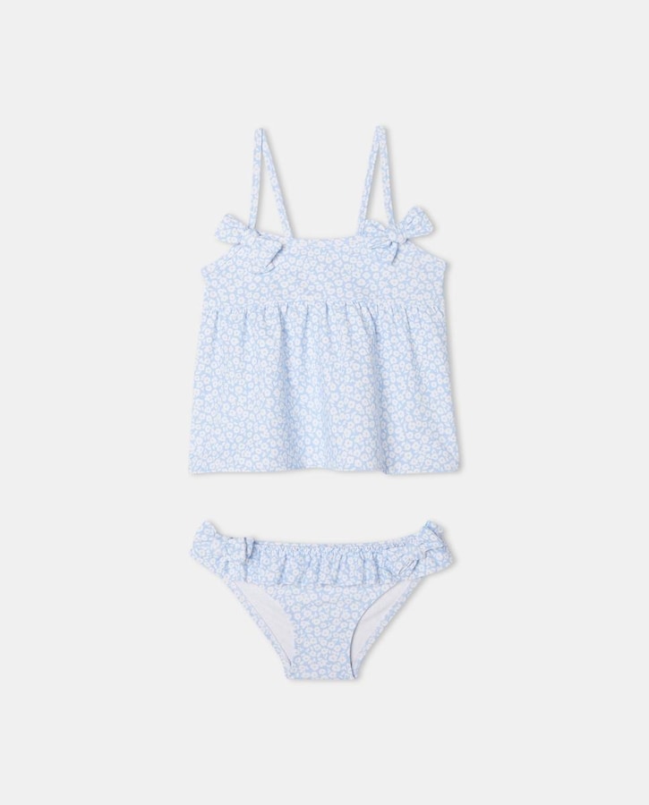 Conjunto de baño de bebé niña con flores azules
