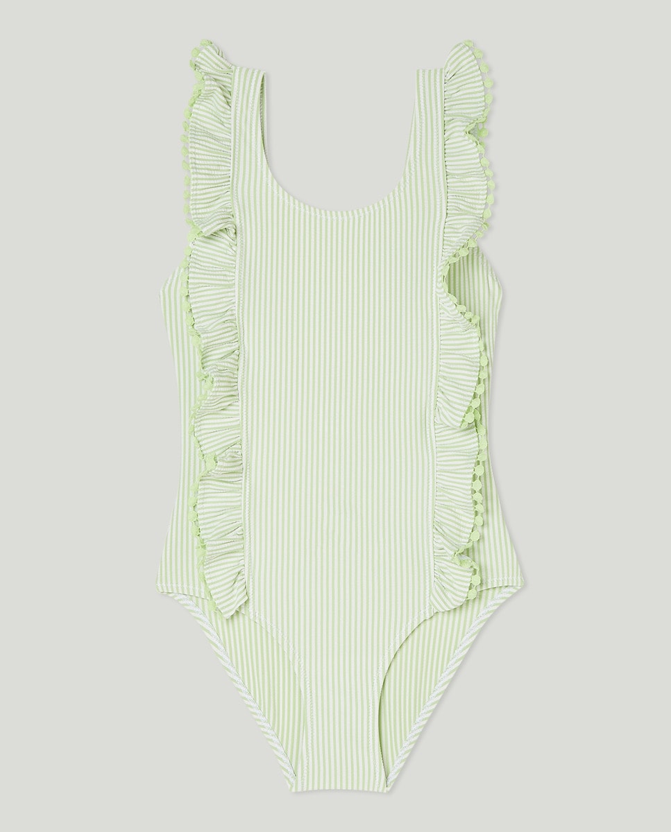 Bañador de niña con estampado de rayas y volantes