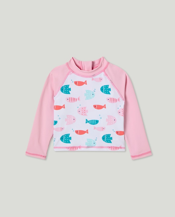 Camiseta UPF50 de bebé niña con all over print pececitos
