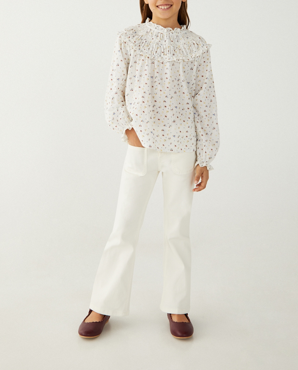 Blusa de estilo romántica de niña con canesú fruncido