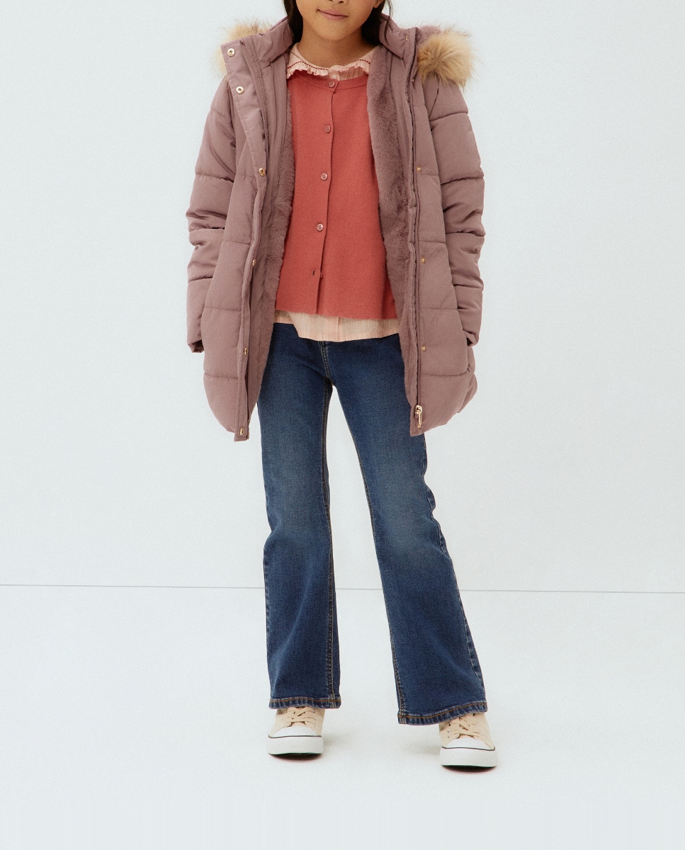 Parka larga de niña con cinturón