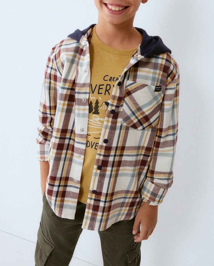 Sobrecamisa de niño manga larga con estampado de cuadros