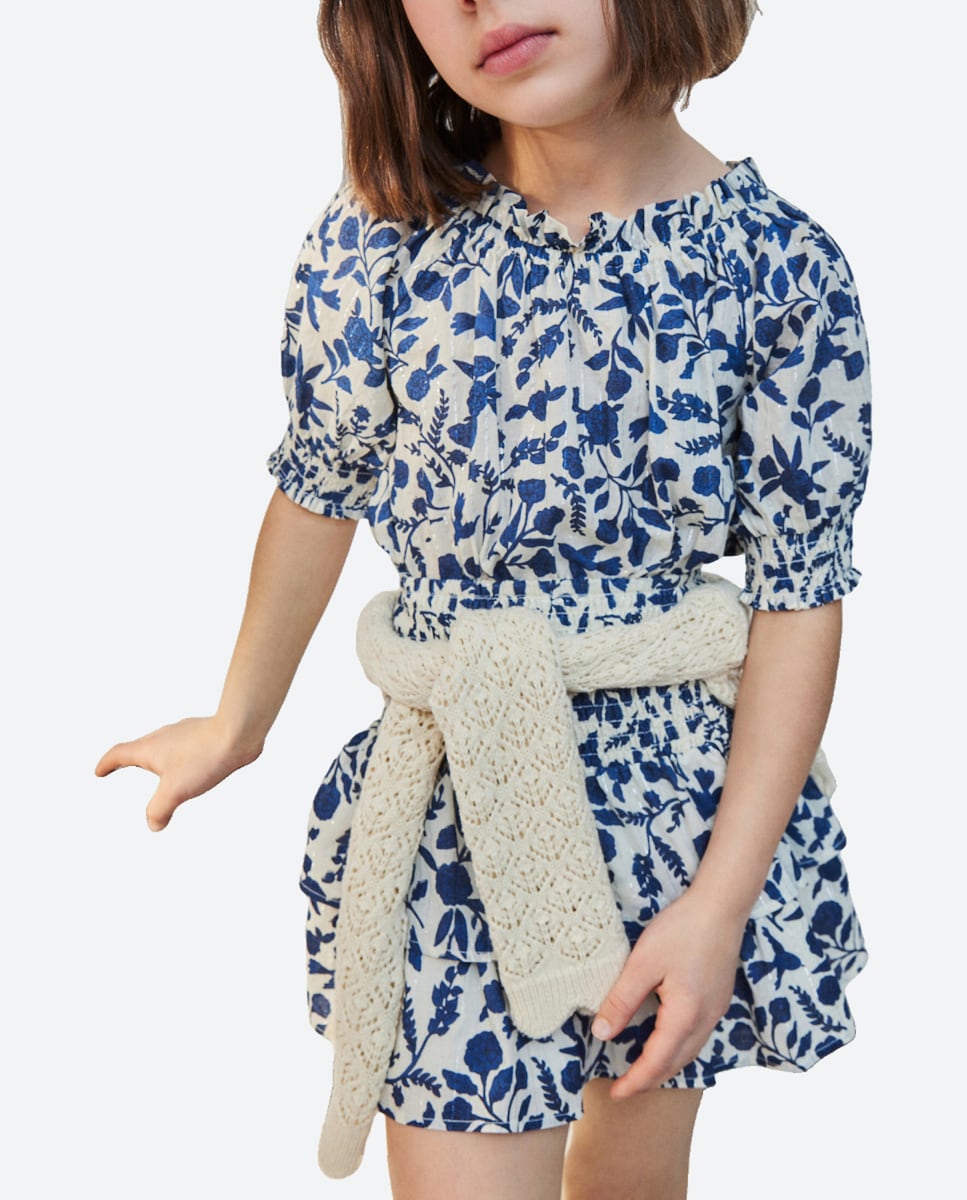 Blusa de niña de manga corta con gomas en escote