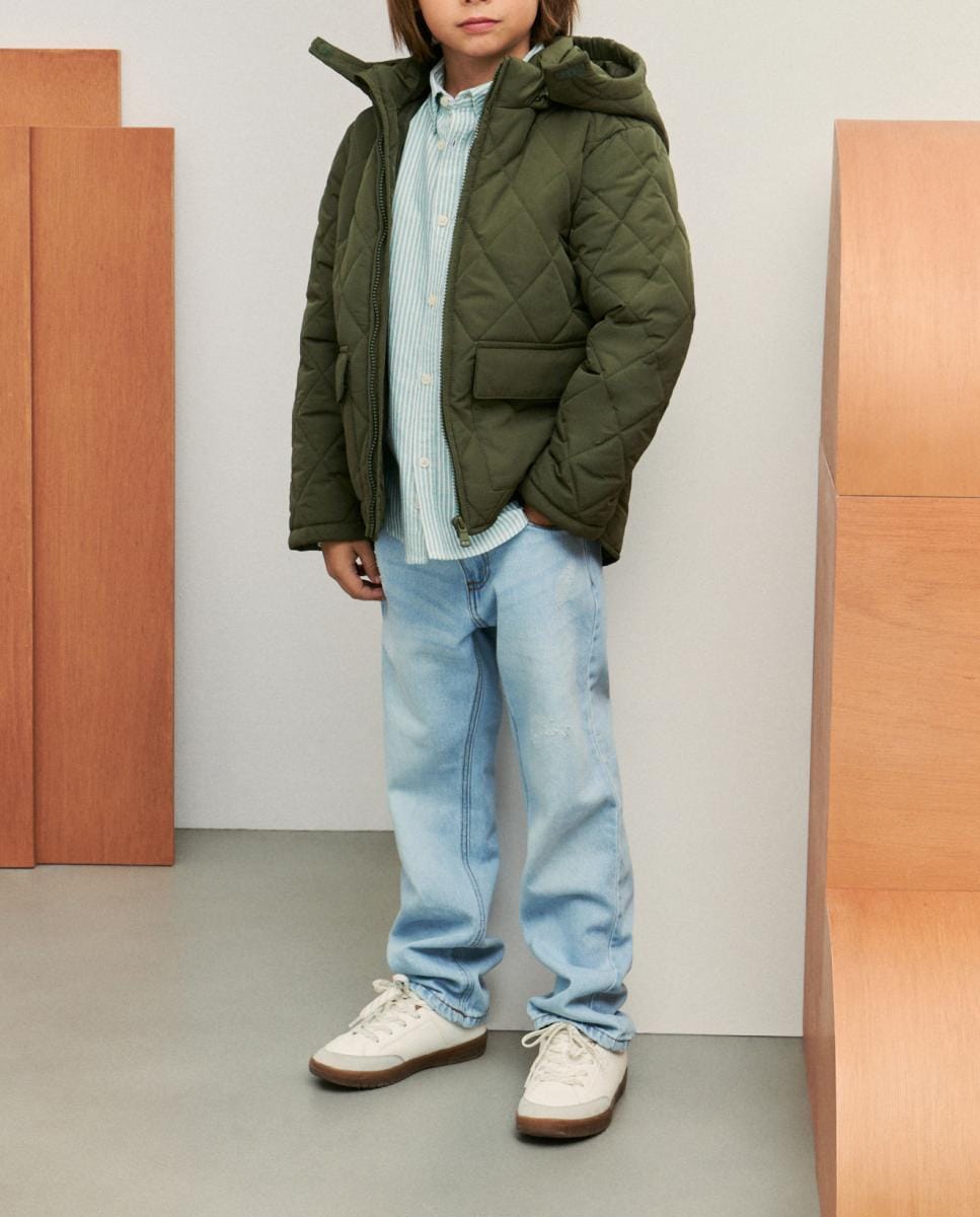 Plumífero con acolchado ligero en color liso de niño