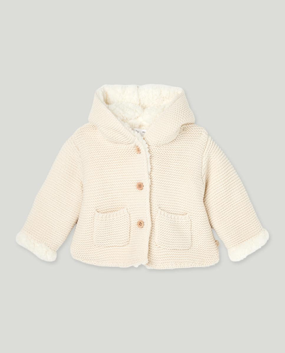 Chaqueta corta tricot grueso con capucha de bebé niña