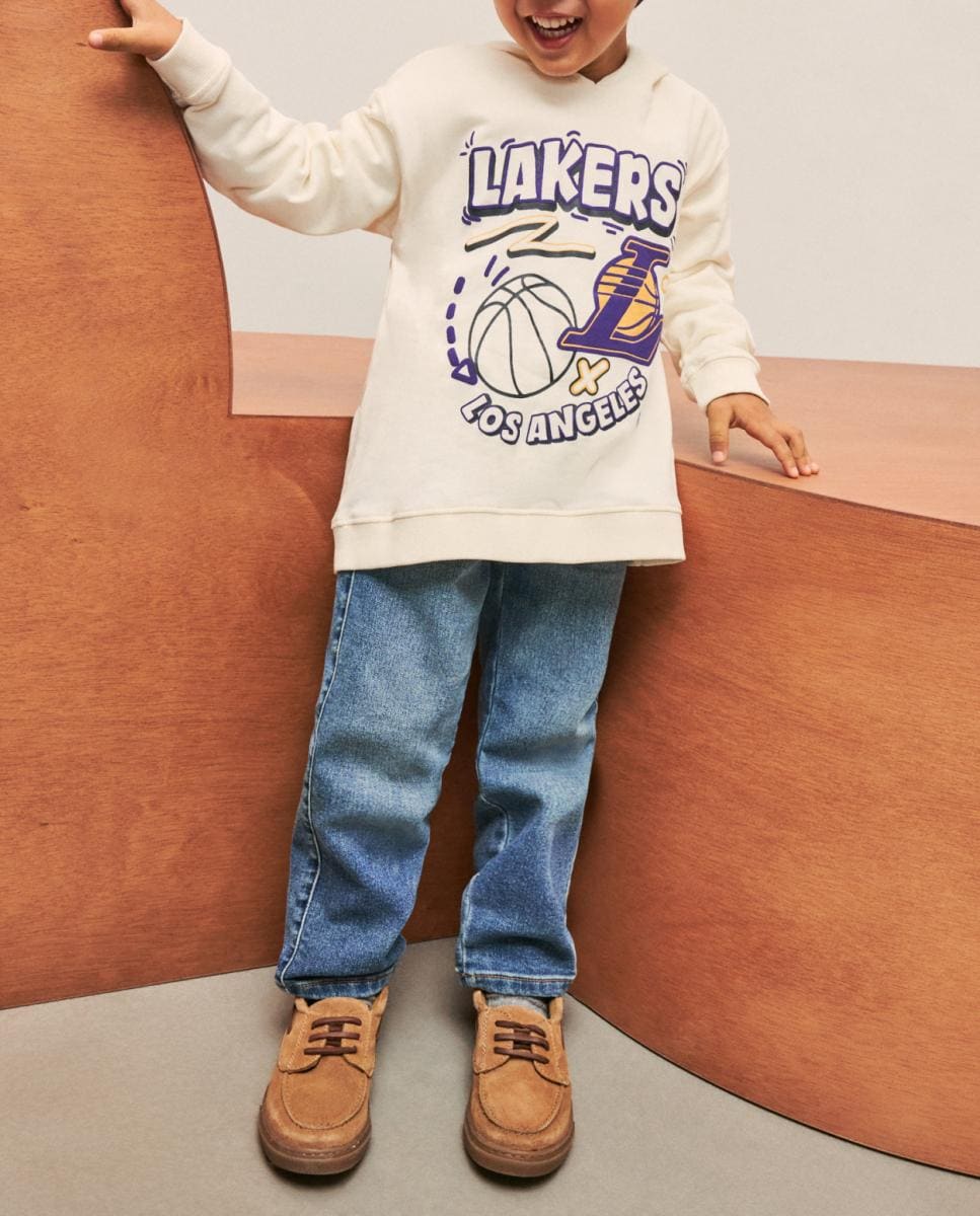 Sudadera cuello caja con estampado licencia NBA LAKERS de niño