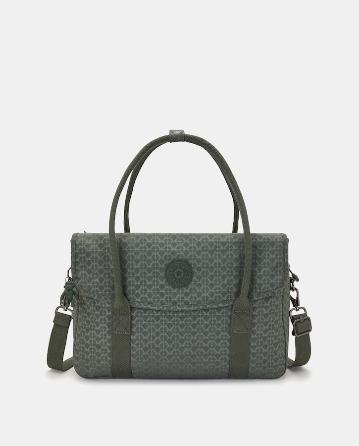 Portadocumentos pequeño en tono verde con compartimento para portátil