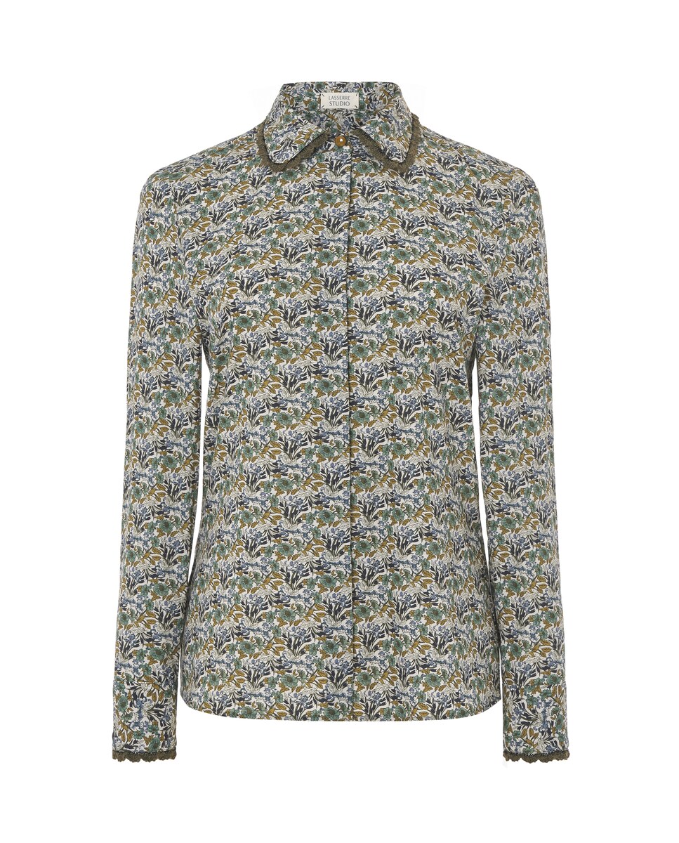 Camisa de mujer cuello redondeado y puntilla en cuello