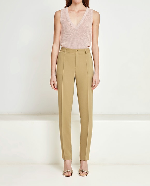 Pantalón recto de mujer de tiro alto y nervio delantero