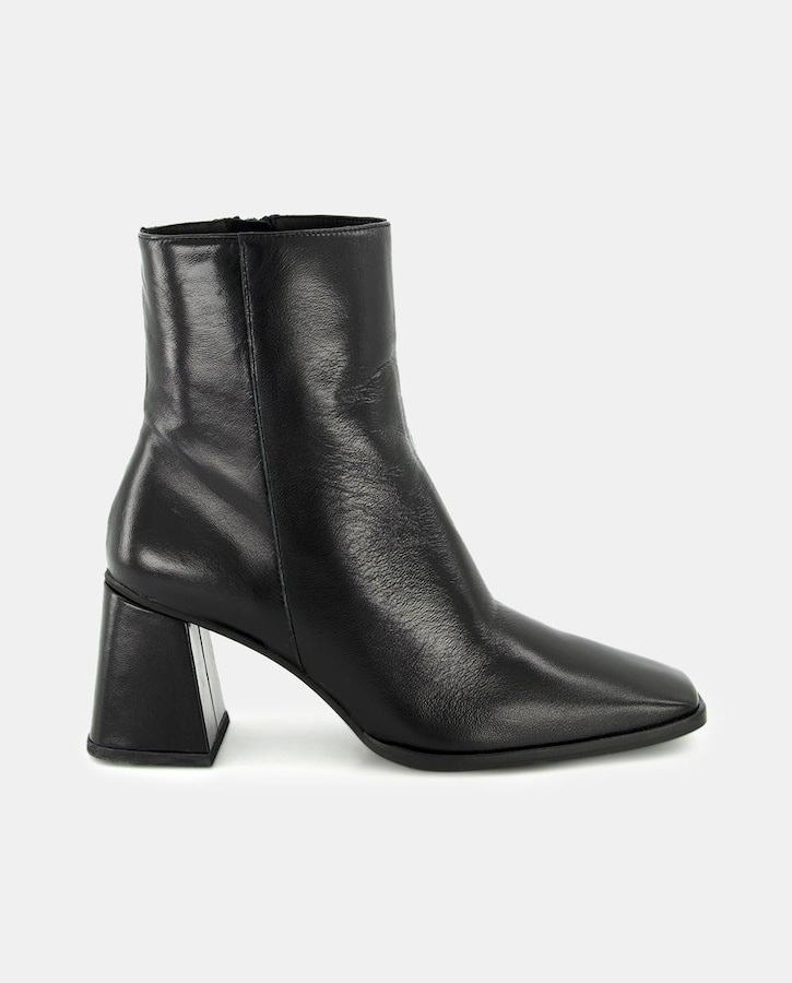 Botines de mujer en charol con puntera cuadrada y tacón bloque