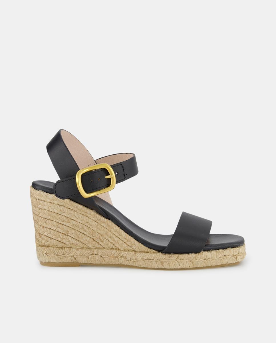 Alpargatas de cuña de mujer en piel - Línea Esparteñas