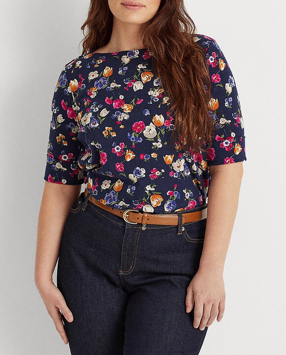 Camiseta de mujer talla grande cuello barco manga tres cuartos
