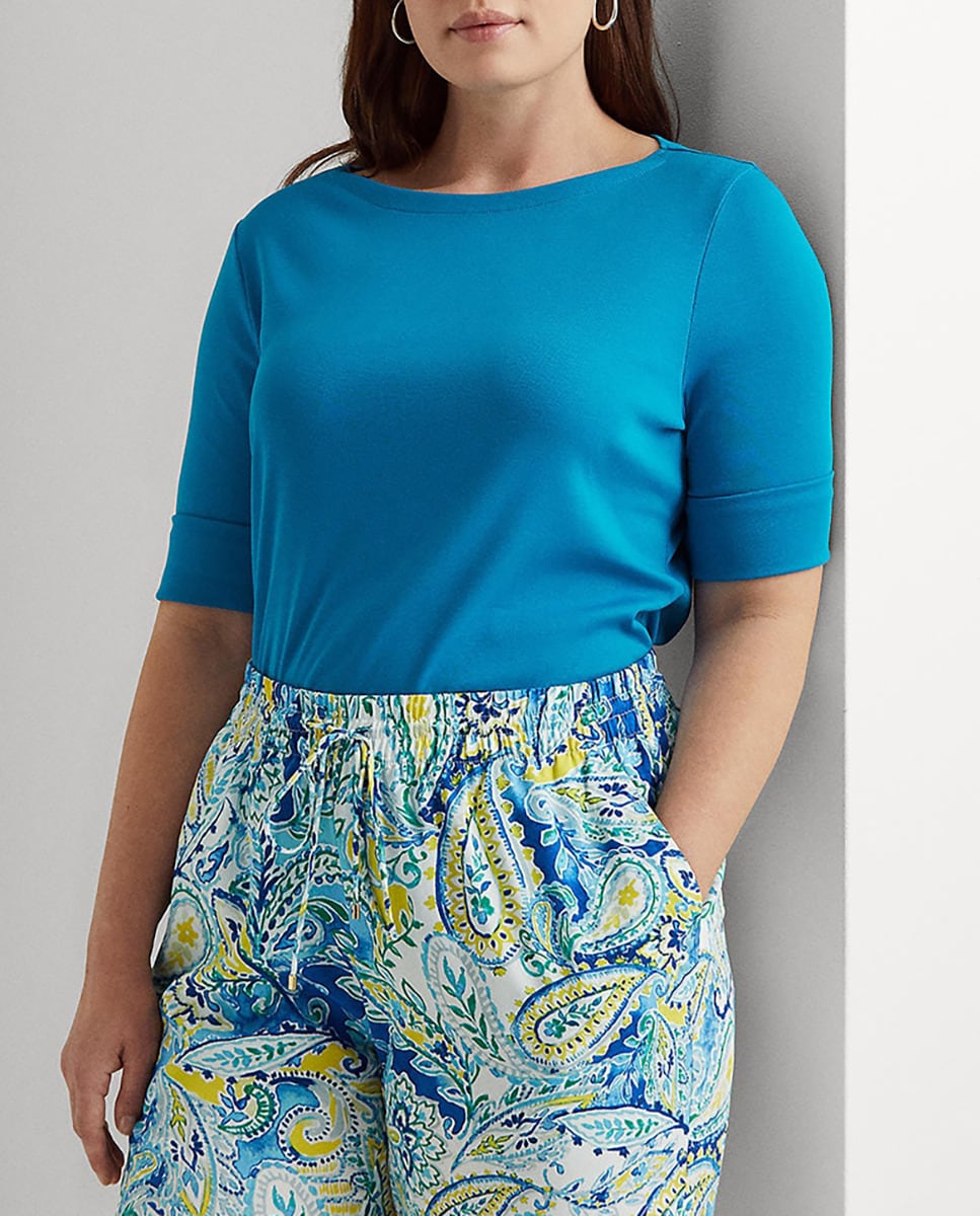 Camiseta de mujer talla grande de manga francesa y cuello barco