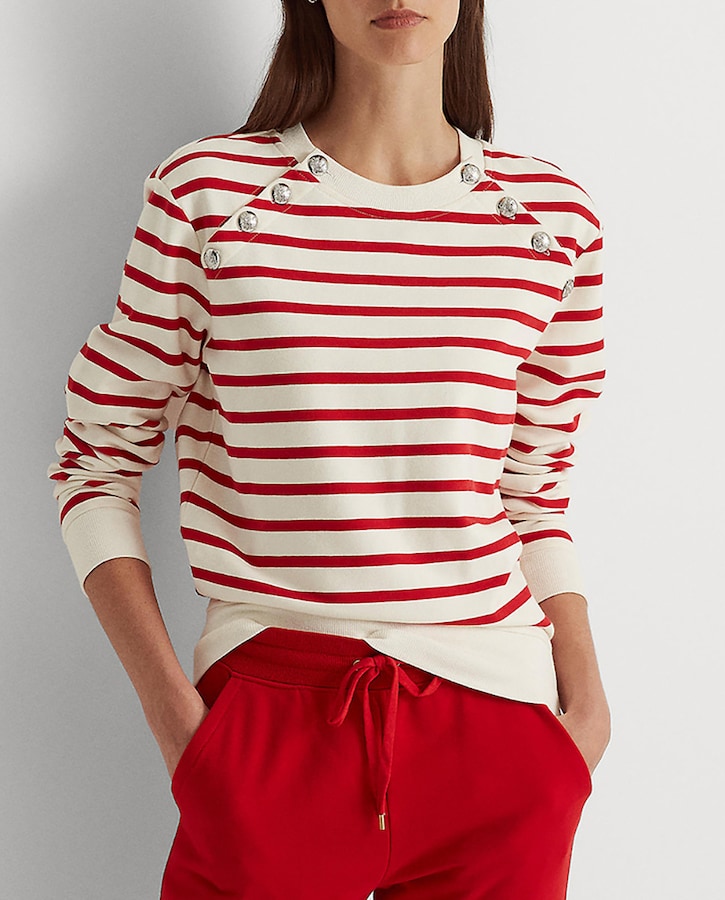 Sudadera de mujer de rayas con ribete de botones