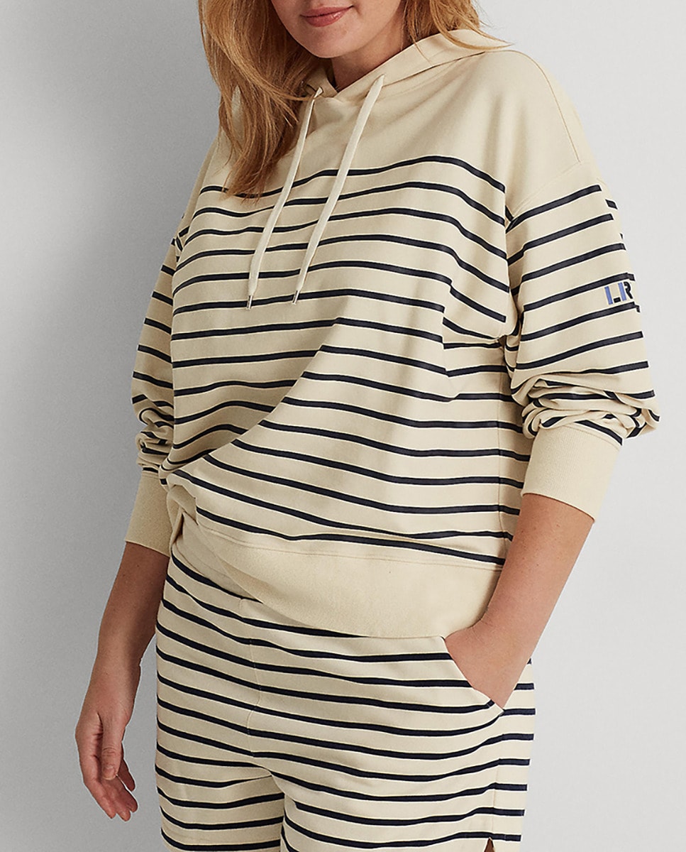 Sudadera de mujer talla grande de rayas con capucha