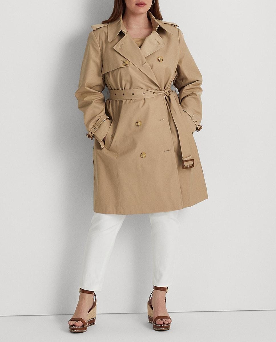 Gabardina de mujer talla grande cruzada de mezcla de algodón