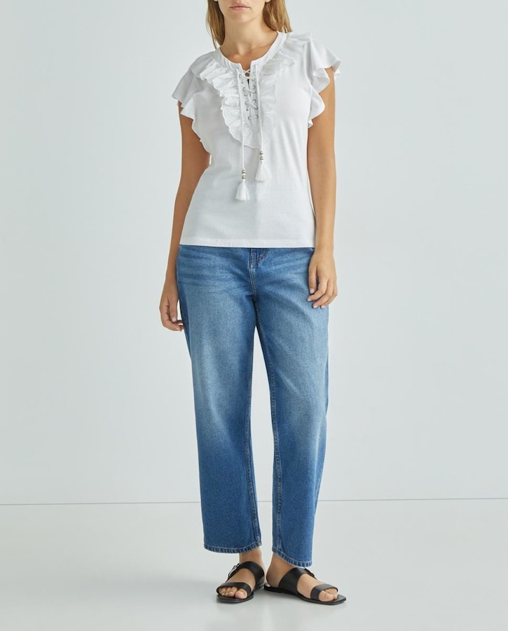 Camiseta de mujer manga corta con volante