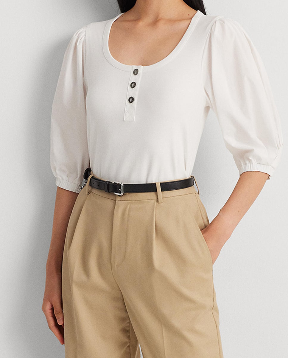 Camiseta de mujer de manga francesa abullonada y botones