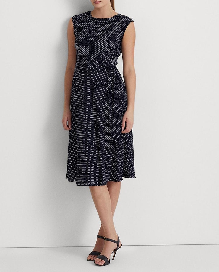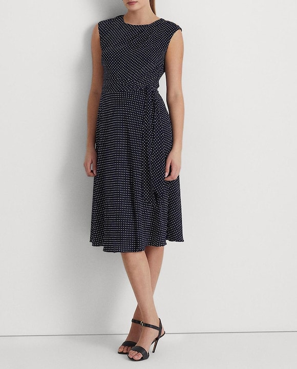 Vestido de crepé con cinturón y lunares