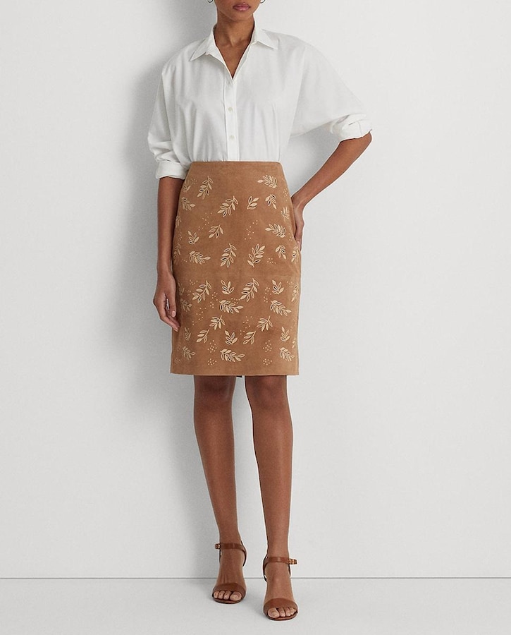 Falda de tubo de ante con bordado