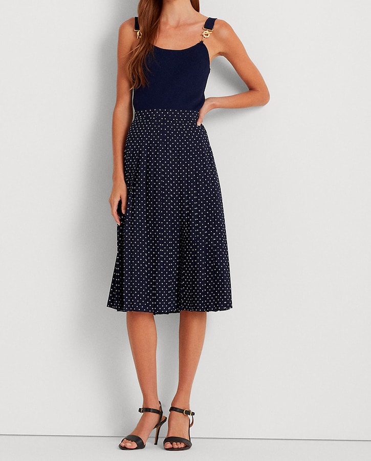 Falda plisada de crepé con lunares