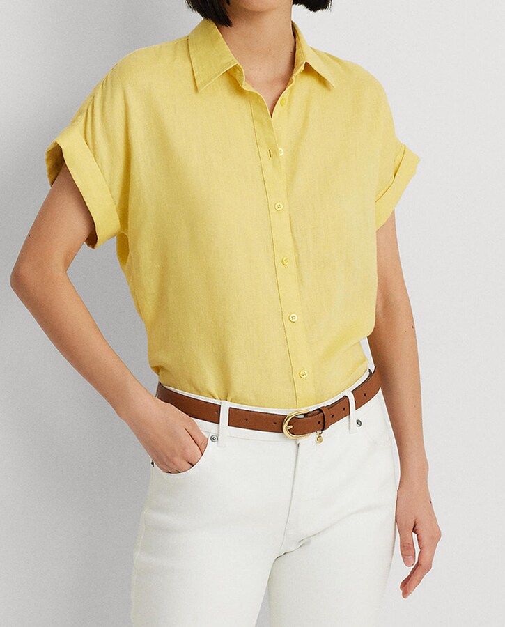 Camisa de mujer de lino de manga corta