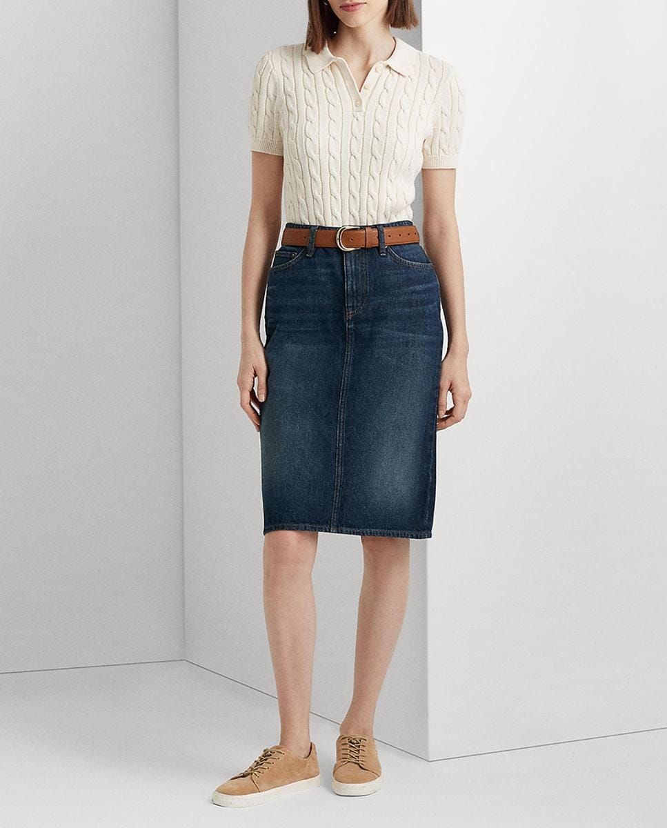 Falda midi vaquera de algodón