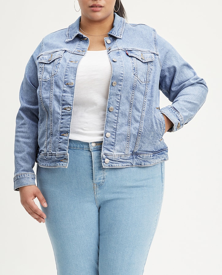 Cazadora vaquera de mujer talla grande, lavado claro.