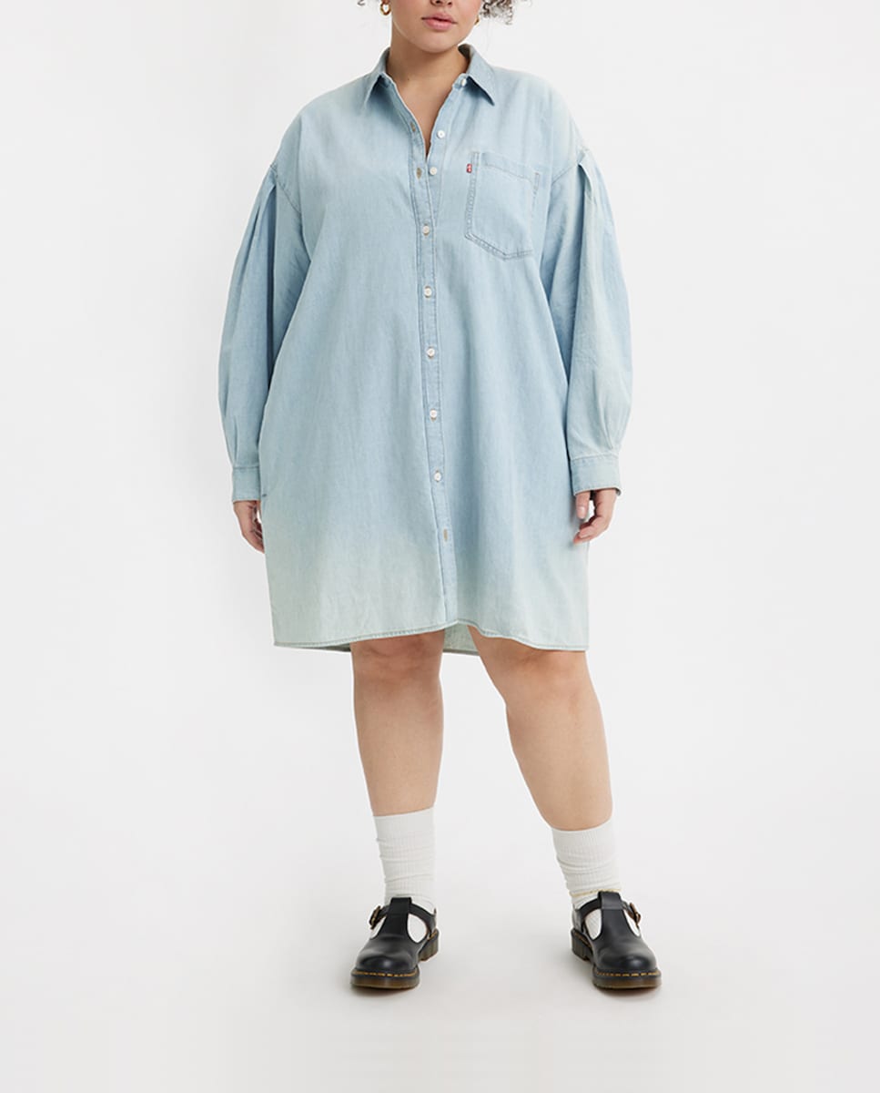 Vestido vaquero tipo camisa de manga larga talla grande