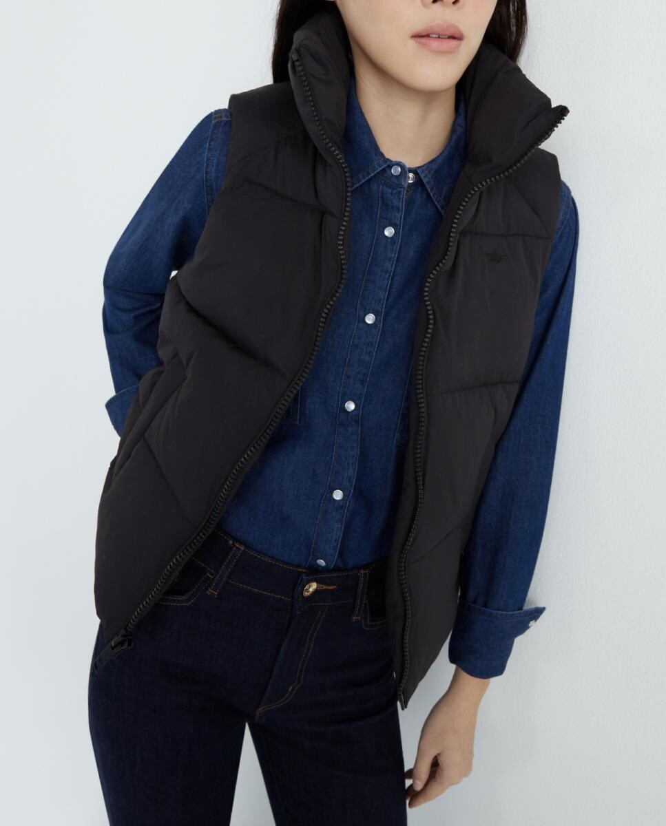 Cazadora de mujer tipo chaleco con bolsillos laterales.