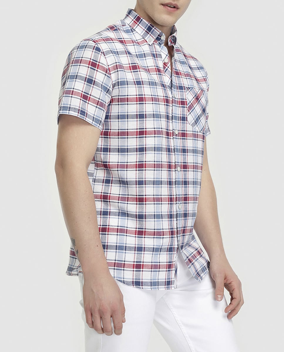 Camisa de lino de hombre Studio Classics slim de cuadros bicolor