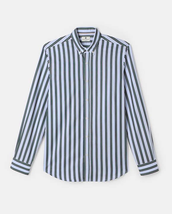 Camisa de hombre regular de rayas azul claro