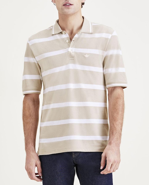 Polo de hombre con rayas beige y blancas, slim fit
