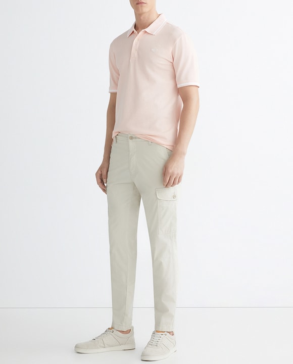 Pantalón Cargo de hombre. Fit Tapered, color crudo, tejido ligero