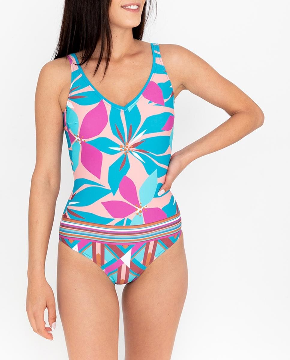 Bañador escote redondo estampado geométrico