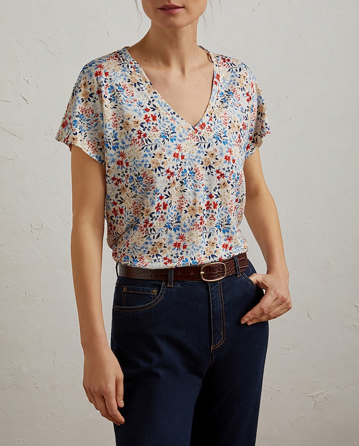 Camiseta de mujer estampada de 100% lino