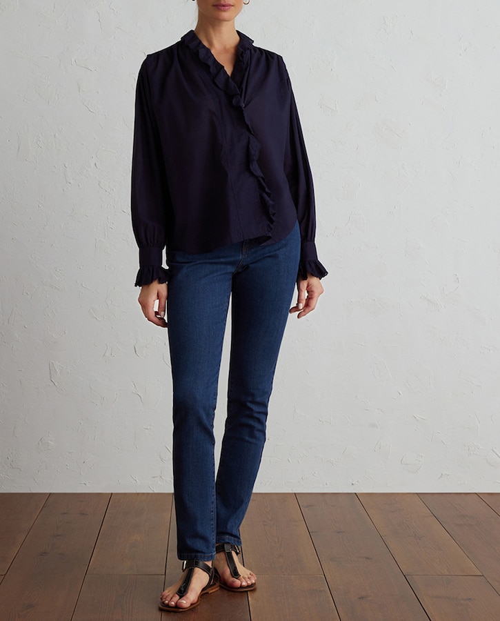 Blusa de mujer manga larga con volante