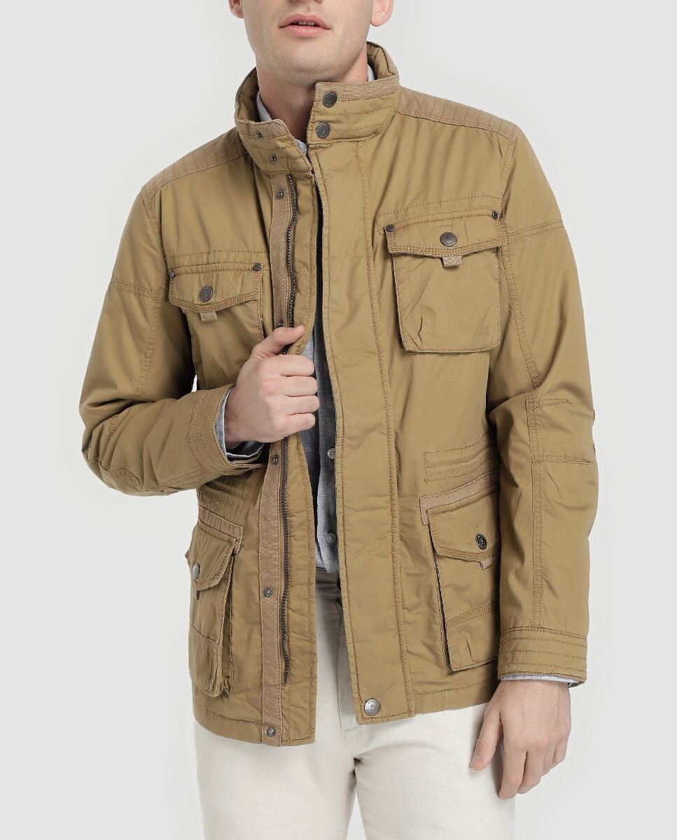 Chaqueta de abrigo de hombre camel con cuatro bolsillos