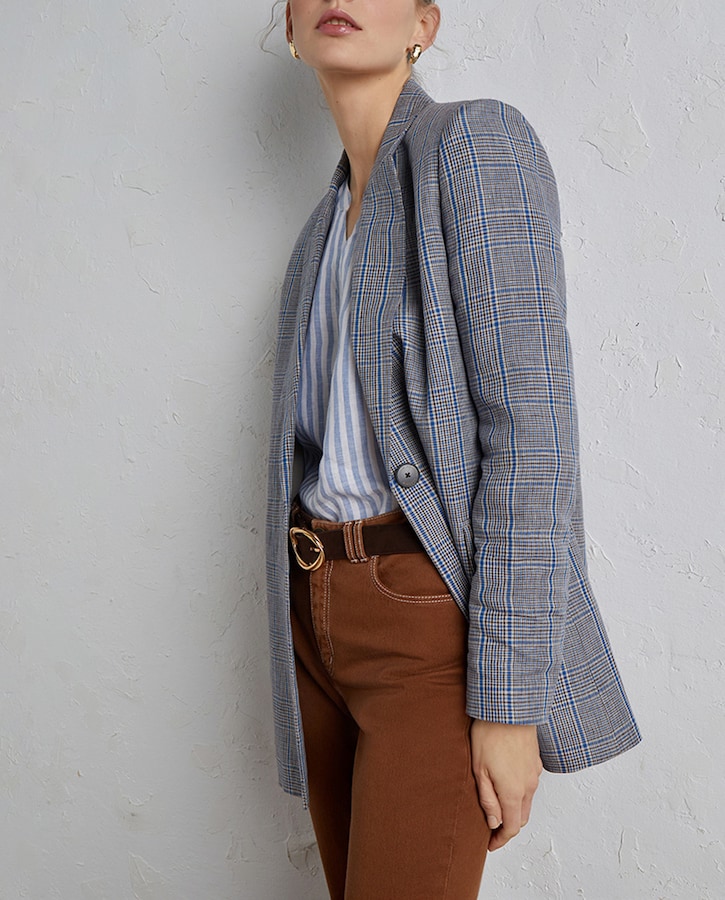 Blazer de cuadros de 100% lino