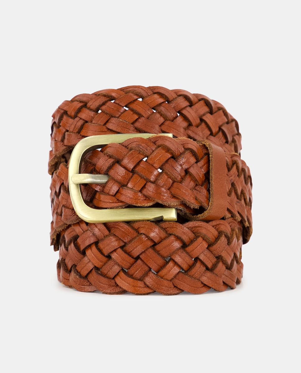 Cinturón de piel trenzado marrón